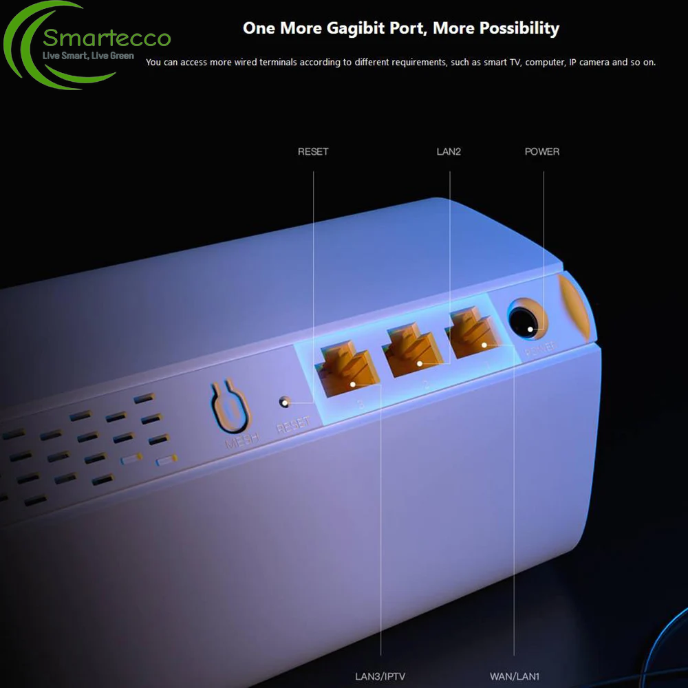 Designed to eliminate WiFi dead zones, this mesh system provides coverage up to 7,000 sq.ft, making it ideal for large homes, offices, and multi-story buildings. Each unit works together seamlessly to create a unified network experience with smooth device roaming. The system supports separate SSIDs for 2.4GHz (574Mbps) and 5GHz (2402Mbps) bands, allowing users to optimize device connections based on their specific needs.